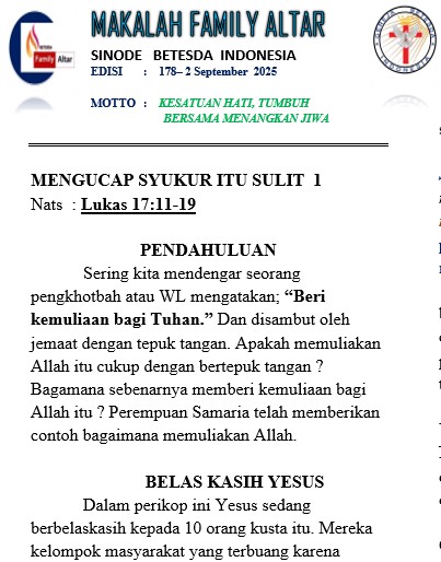 Nats: Kej 16:1-10 PENDAHULUAN : Diawal Kitab Kejadian kita sudah disuguhkan dengan prahara dalam keluarga. Adam dan Hawa manusia pertama mengalami prahara karena ketidak taatannya. Prahara bisa terjadi didalam keluarga siapapun termasuk keluarga nabi. Kalau prahara itu mampir dalam keluarga kita, jangan putus asa apalagi takut....