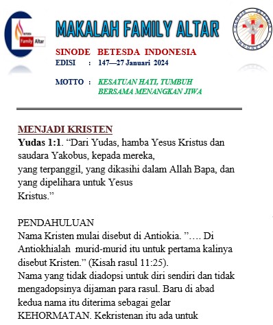 Yudas 1:1. “Dari Yudas, hamba Yesus Kristus dan saudara Yakobus, kepada mereka, yang terpanggil, yang dikasihi dalam Allah Bapa, dan yang dipelihara untuk Yesus Kristus.”   PENDAHULUAN Nama Kristen mulai disebut di Antiokia. ”…. Di Antiokhialah  murid-murid itu untuk pertama kalinya disebut Kristen.” (Kisah rasul 11:25). Nama yang tidak diadopsi untuk...