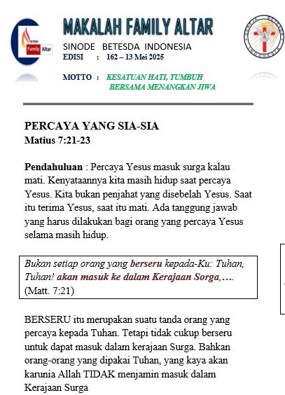 Pendahuluan : Percaya Yesus masuk surga kalau mati. Kenyataannya kita masih hidup saat percaya Yesus. Kita bukan penjahat yang disebelah Yesus. Saat itu...