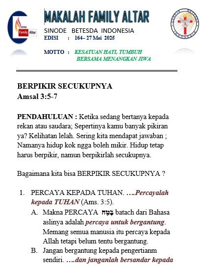 Amsal 3:5-7 PENDAHULUAN : Ketika sedang bertanya kepada rekan atau saudara; Sepertinya kamu banyak pikiran ya? Kelihatan lelah. Sering kita mendapat jawaban ; Namanya...