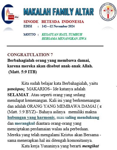 Berbahagialah orang yang membawa damai, karena mereka akan disebut anak-anak Allah. (Matt. 5:9 ITB) Kita sudah belajar kata Berbahagialah, yaitu μακάριος MAKARIOS– Ide katanya adalah...
